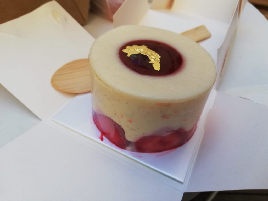 Maison du Gourmet, à emporter. Bien pour un fraisier. La recette ne me paraissait pas spécialement différente d’un fraisier grand